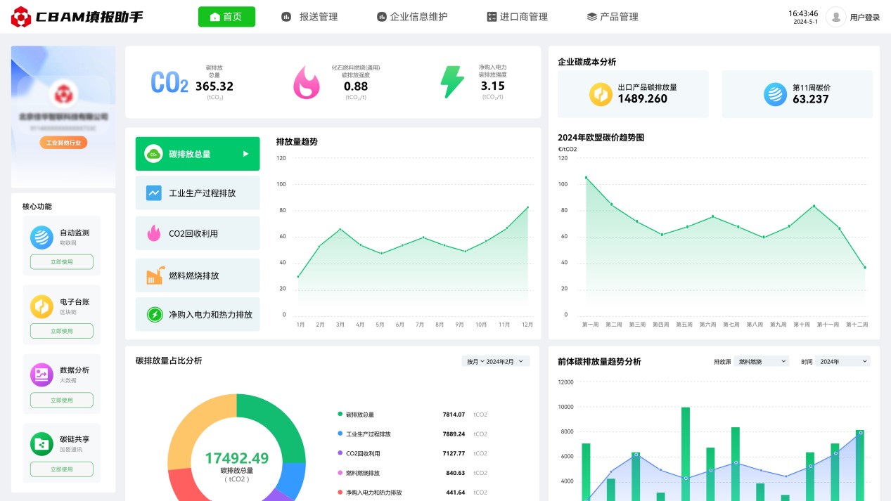 2023年10月1日起,歐盟碳邊境調(diào)整機(jī)制(CBAM)已進(jìn)入過渡期,CBAM涵蓋范圍的出口產(chǎn)品需按時(shí)提交產(chǎn)品碳排放報(bào)告,未提交報(bào)告的企業(yè)將面臨高額處罰。為解決企業(yè)由于官方政策文件理解難度大,專業(yè)門檻高,數(shù)據(jù)搜集難度大,部分?jǐn)?shù)據(jù)缺失無法填等困擾,推出碳關(guān)稅管理平臺(tái)(CBAM填報(bào)助手),通過數(shù)字化方式,為企業(yè)提供碳數(shù)據(jù)填報(bào)、碳數(shù)據(jù)核算、碳數(shù)據(jù)報(bào)送、碳數(shù)據(jù)認(rèn)證、咨詢培訓(xùn)等全流程服務(wù)。可極大減少企業(yè)碳排放報(bào)送門檻,助力企業(yè)低成本合規(guī)報(bào)送碳排放數(shù)據(jù)。